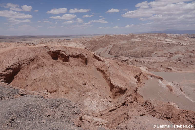 Blick vom Mirador Likan-Antay auf das Valle de la Luna im chilenischen Teil der Atacama-Wüste